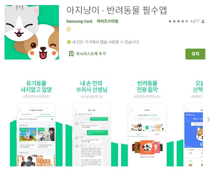 세 번째 소개할 어플은 아지냥이 (반려동물 정보) 어플입니다. 반려동물 입양정보와 건강정보 그리고 반려동물 전용 음악과 산책 정보까지 다양한 반려동물정보가 있습니다. 아래는 아지냥이 (반려동물 정보) 어플에 대한 자세한 설명이니 참고하세요~