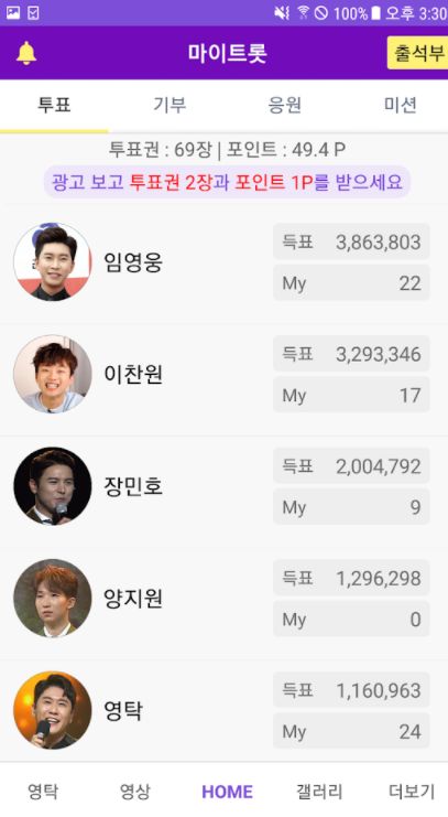 영탁 노래 모음 어플을 만들어 주신 개발자님 감사합니다~