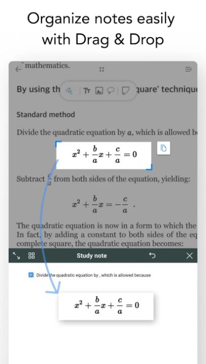 드래그 & 드롭 액션을 통해 다른 앱에서 텍스트, 이미지를 드래그 & 드롭으로 가져와, PDF와 노트에 추가할 수 있습니다.