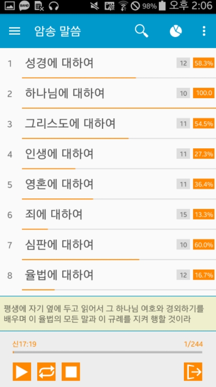 발췌된 성경 말씀을 주간별로 암송하기 위한 어플입니다.